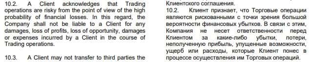 Мошенники АБанк Компани также снимают с себя ответственность за тот результат, который получит каждый их клиент. Даже если этому виной станет действия руководства и сотрудников.