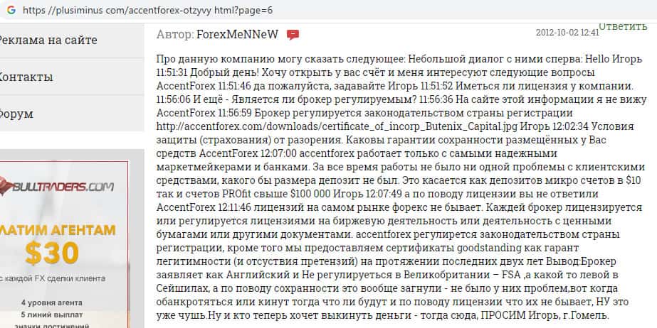 - Негативный опыт сотрудничества у бывшего трейдера с шулерским форекс дилером AccentForex