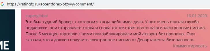 - Реальный негативный отзыв от человека, которого попыталась кинуть воровская брокерская контора AccentForex