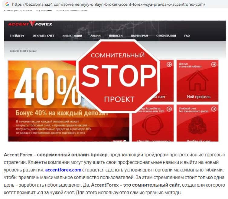 Уважаемый интернет-сайт bezobmana24 com раскрыл правду о злодеяниях воровского форекс дилера AccentForex