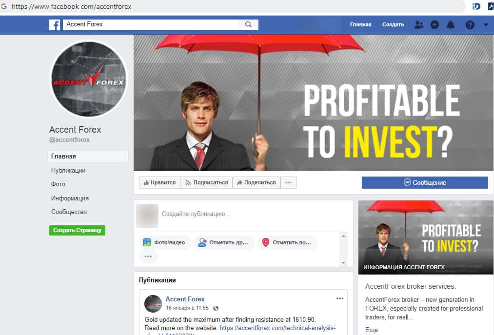 - Жулики из брокерской конторы AccentForex ведут активную деятельность в социальных сетях