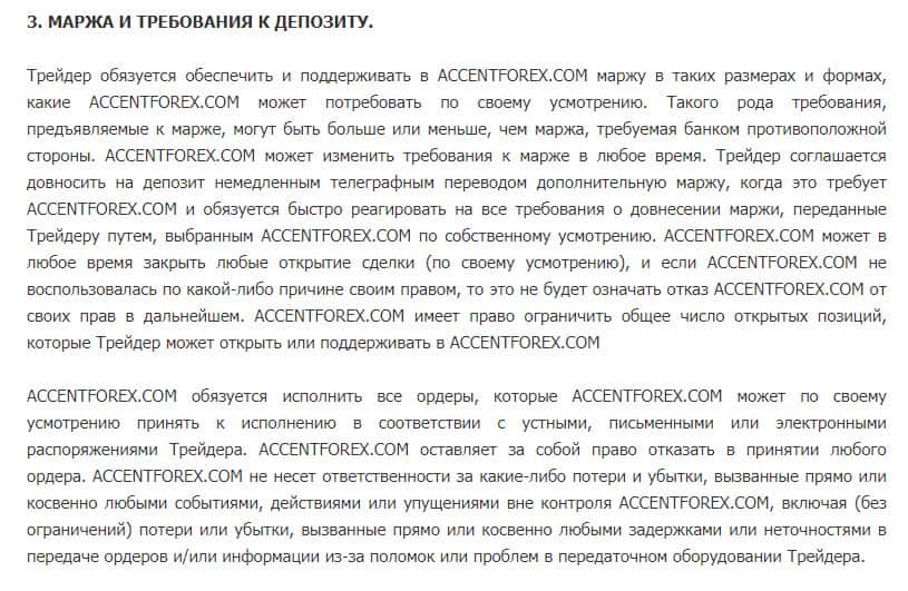 Клиентское соглашение лохотронской брокерской конторы AccentForex