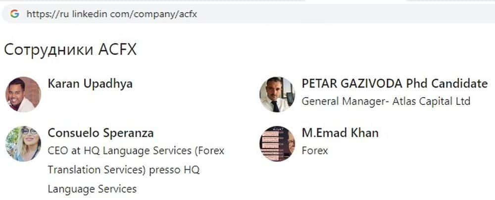 Полное название конторы ACFX - AtlasCapital, которая управляется неким AtlasGroup, известным бизнес-конгломератом в Юго-Восточной Европе. У AtlasGroup якобы двадцатилетний опыт работы в сфере инвестиций и коммерческого банкинга, то есть, в сфере мошенничества. Предполагаемые руководители проекта ACFX: