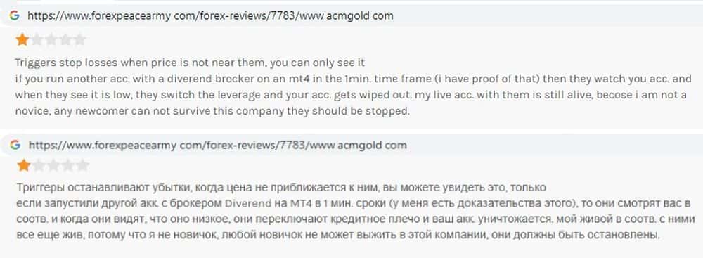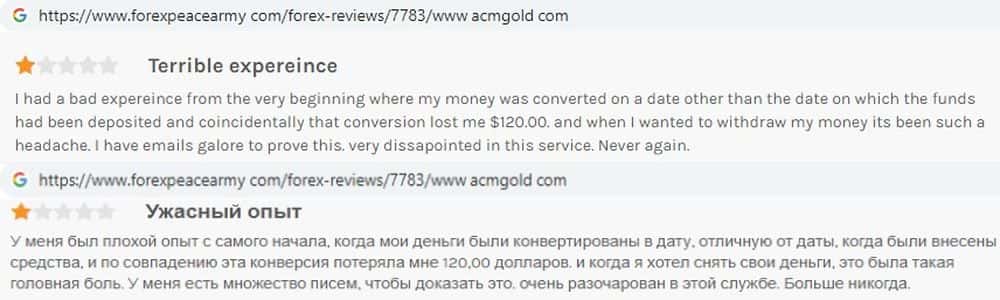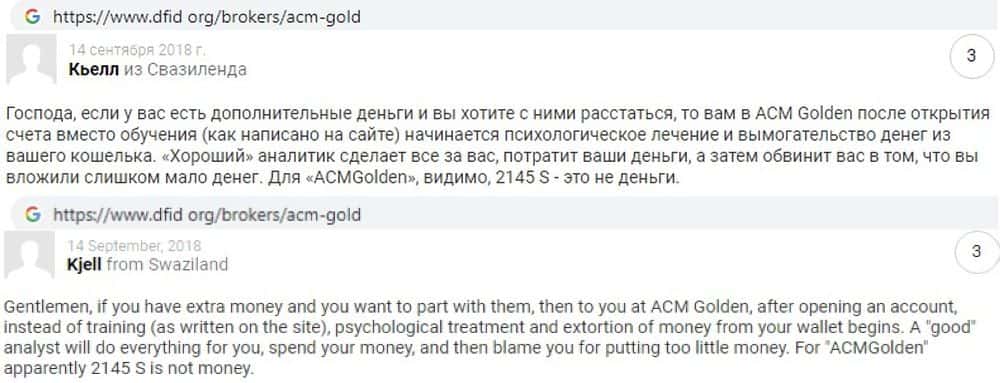 - Мошенники ACM Gold покупают положительные отзывы