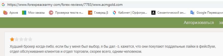 Остается вопрос, как один из самых крупных лохотронов умудряется поддерживать репутацию достойного доверия брокера? Все просто, кидалы ACM Gold проплачивают положительные отзывы. Трейдеры на портале форексписарми ком считают, что эта контора является худшим из возможных брокеров - и у них есть основания так думать.