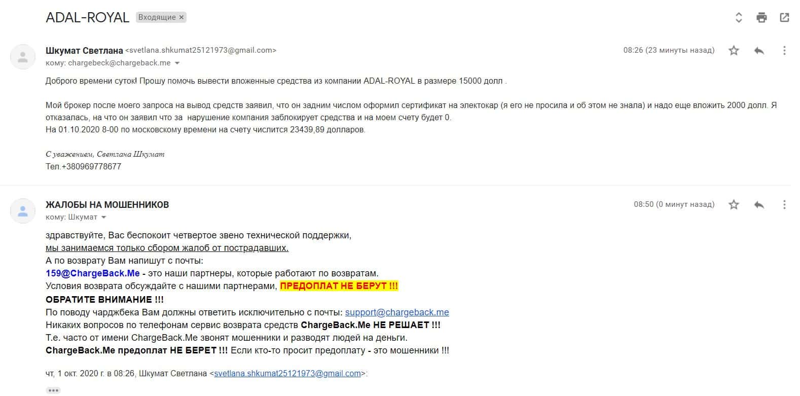 Очередная жалоба на аферистов в лице компании Adal-Royal