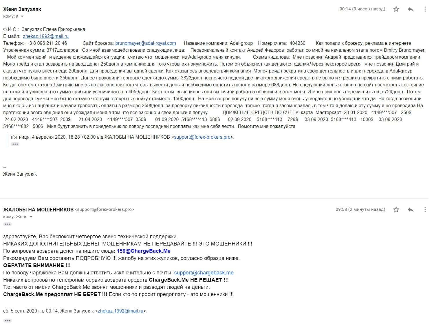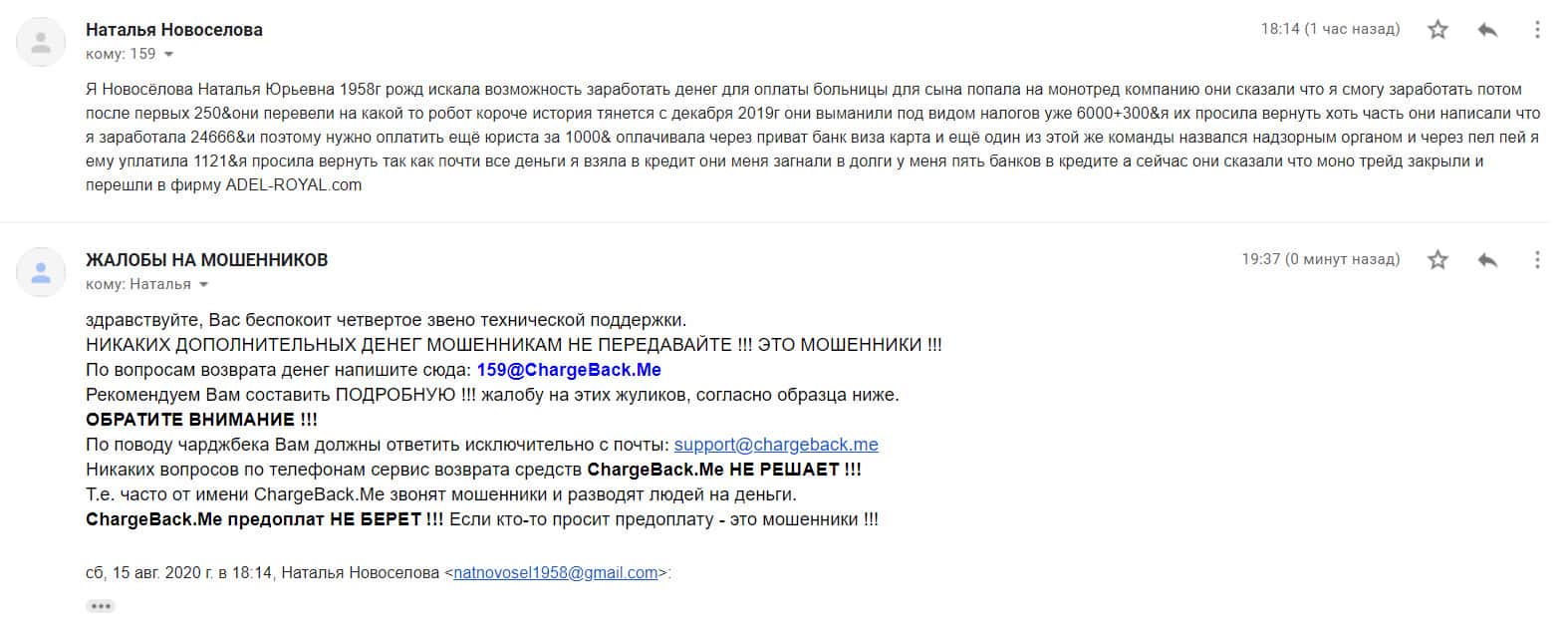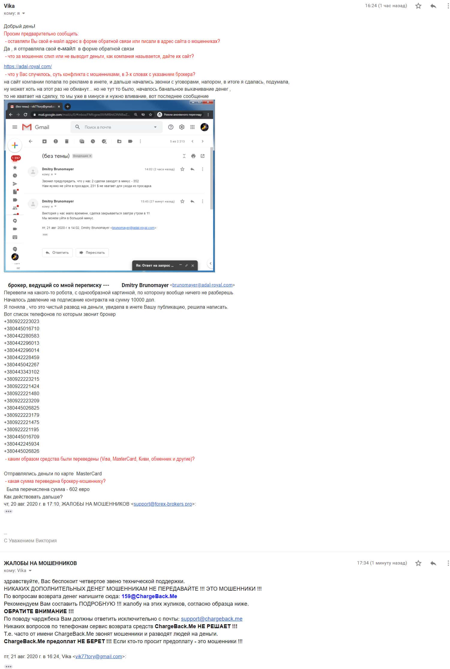 Спустя некоторое время пострадавший клиент прислал более детальную жалобу на мошенническую организацию Адал Роял, которая является одним целым с жульническим проектом МоноТрейд.