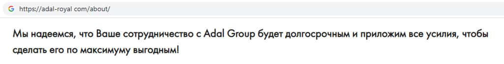adal-royal com - официальный интернет-портал мошенников Adal-Royal