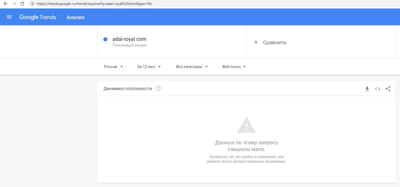 В поисковике Google лохотрон "АдалРоял" вообще не пользуется популярностью, потому как отсутствует информация о количестве запросов по бренду, вероятно она равна 0.