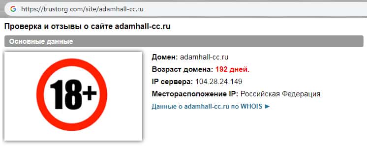 Обзор данных о домене лохотрона AdamHall Consulting Center и оставшаяся информация