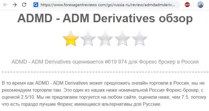 У брокерской конторы АДМ Деривативс низкий рейтинг среди российских форекс-брокеров