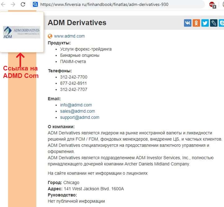 - Краткий обзор брокерской компании ADM Derivatives на интернет-ресурсе finversia ru