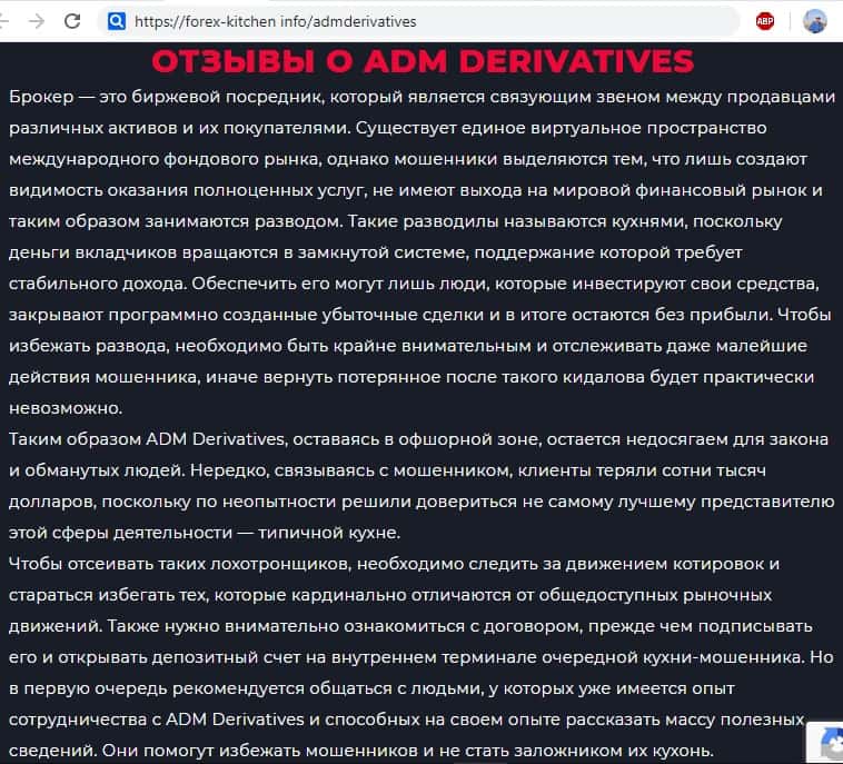 Краткий обзор брокерской компании ADM Derivatives на интернет-ресурсе finversia ru