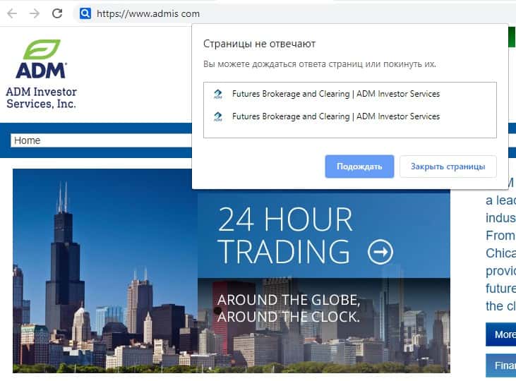 Страницы официального сайта фондового брокера ADM Derivatives (ADM Investor Services) admis com не отвечают