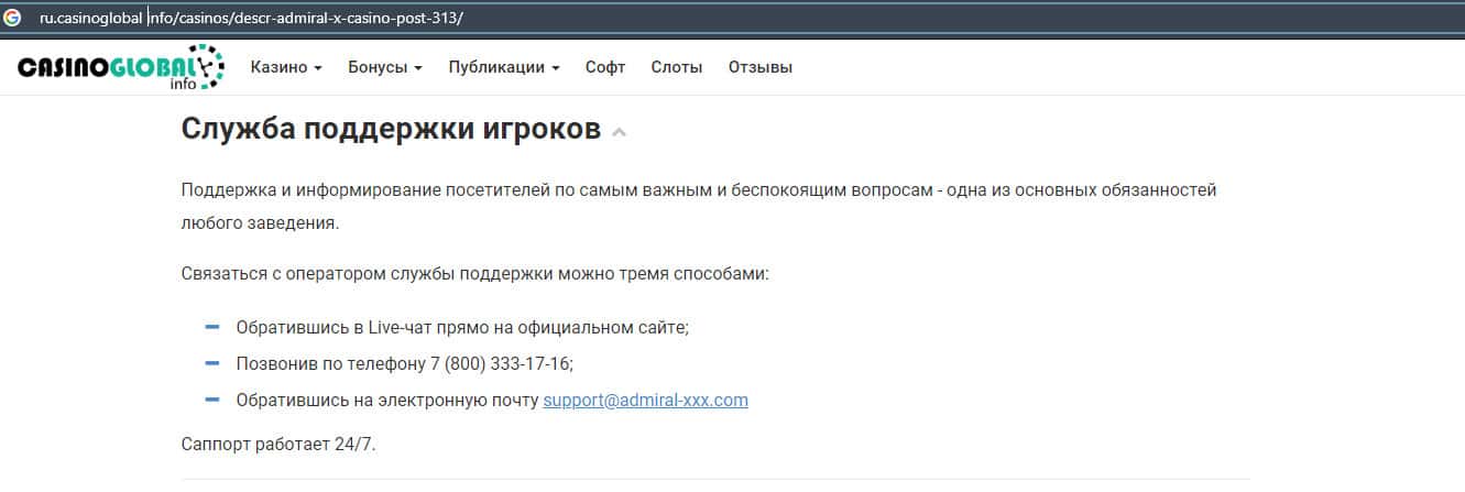 Мошенническая контора Адмирал Х Казино также предоставляет игрокам общаться с ними через онлайн-чат, но лучше туда не обращаться, так как они начнут вас обрабатывать.