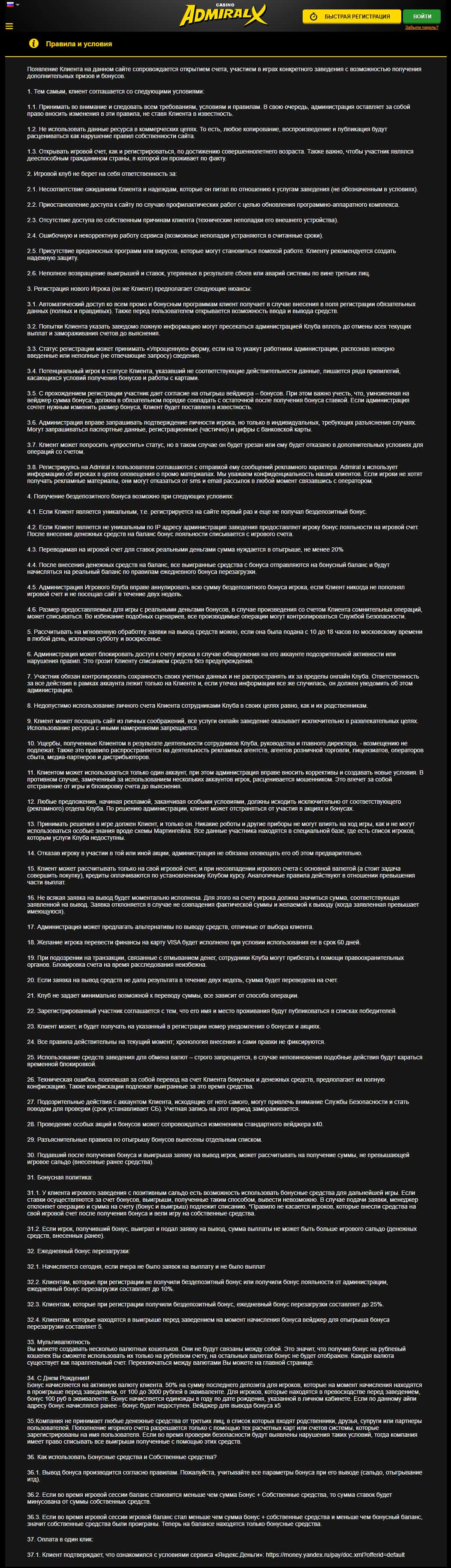 Далее представлен полный скриншот договора мошенников Admiral-Vip-XXX Site, которые заранее хотят вогнать в долги игрока и не нести за украденные деньги ответственность.