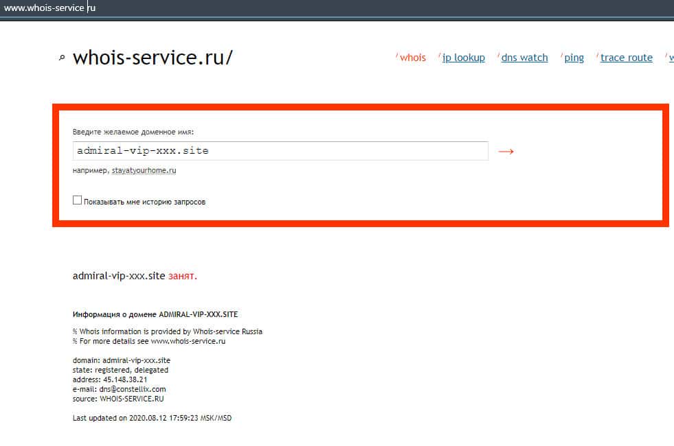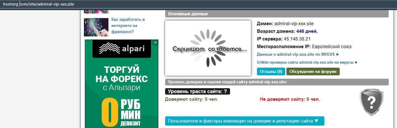 Кто владеет доменом аферистов Admiral-Vip-XXX Site?