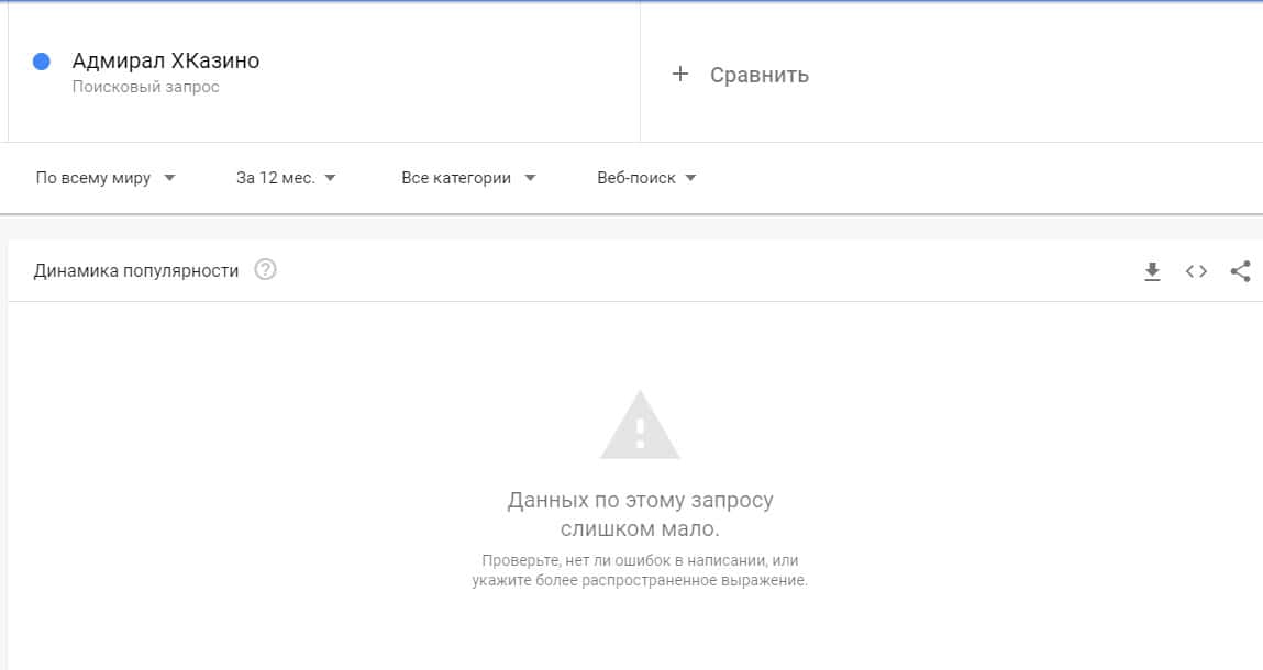 Что касается русскоязычной версии бренда "АдмиралХКазино", контора ни одного показа в месяц, что является нулевым показателем популярности