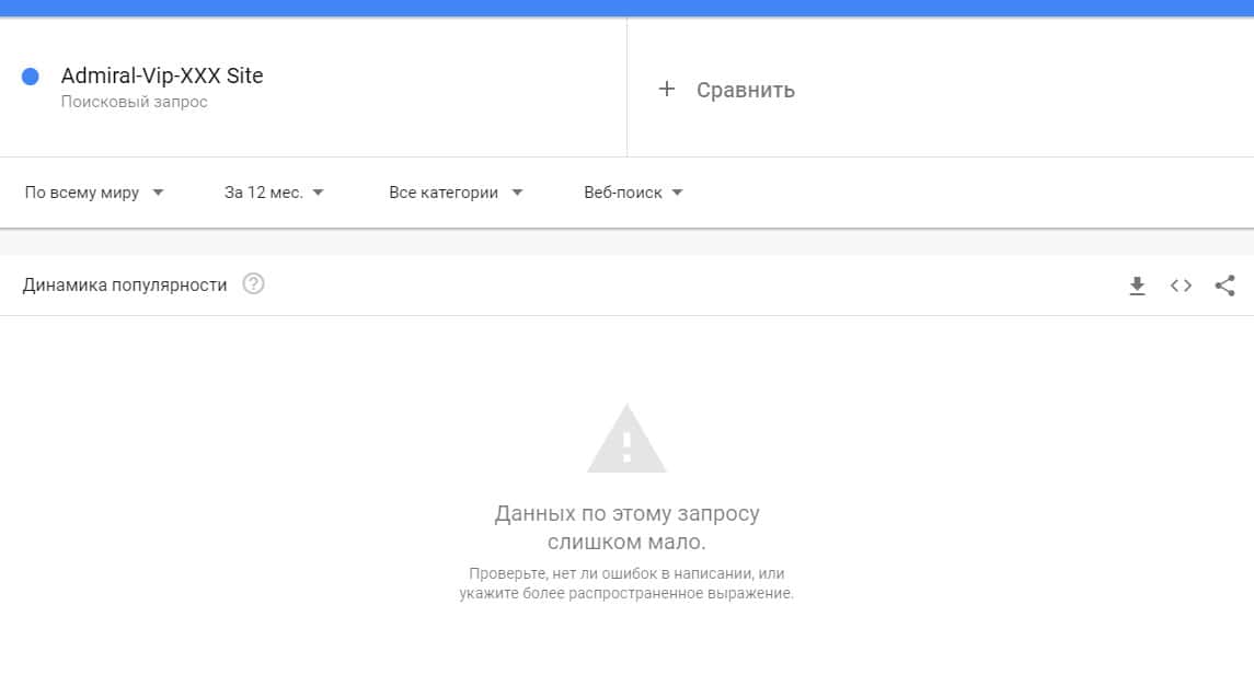 Та же ситуация и с обычным сайтом "Admiral-Vip-XXX.Site", данных о котором в запросах Гугл Трендс не было обнаружено.