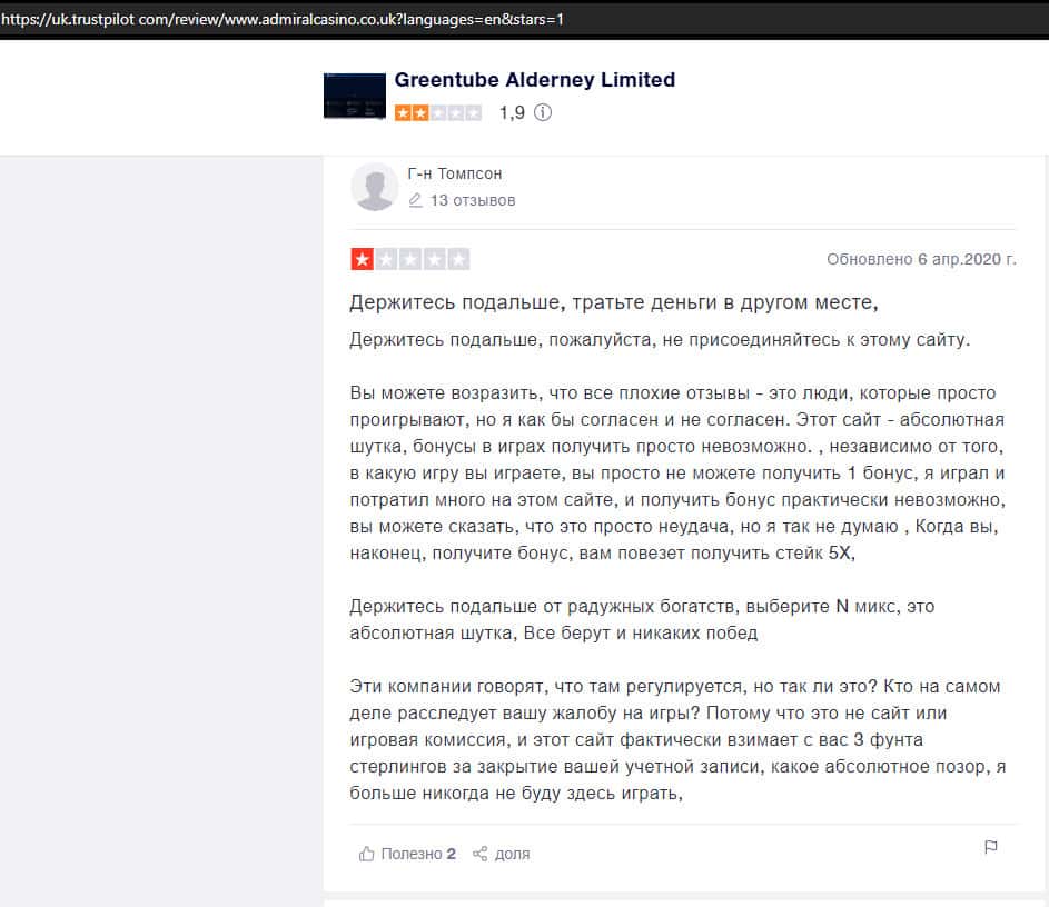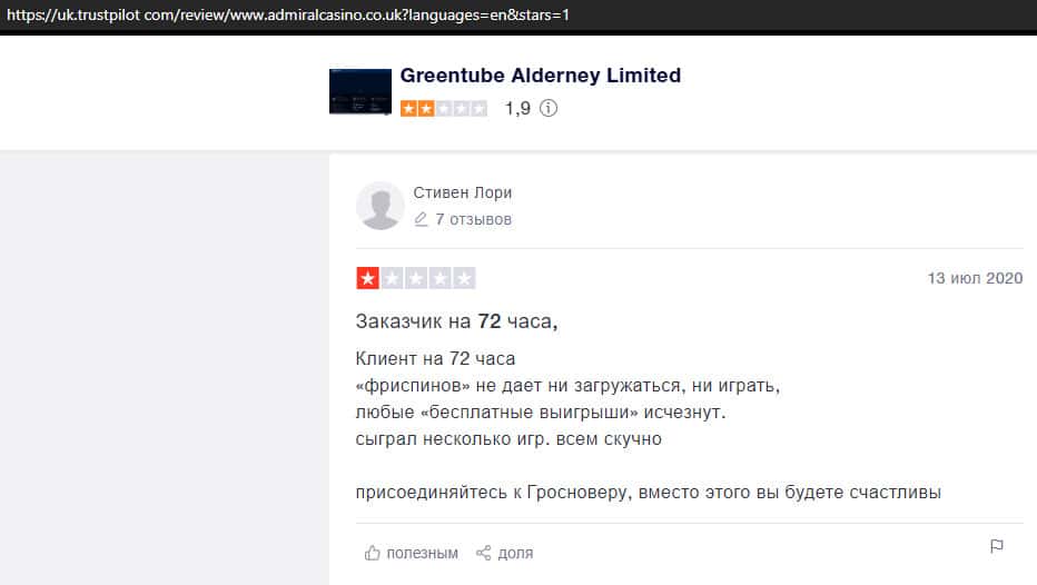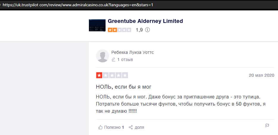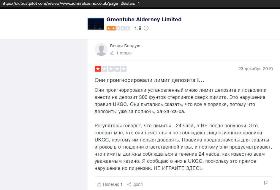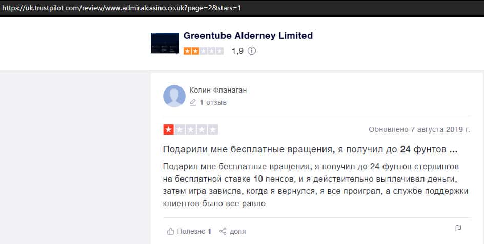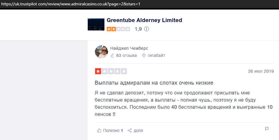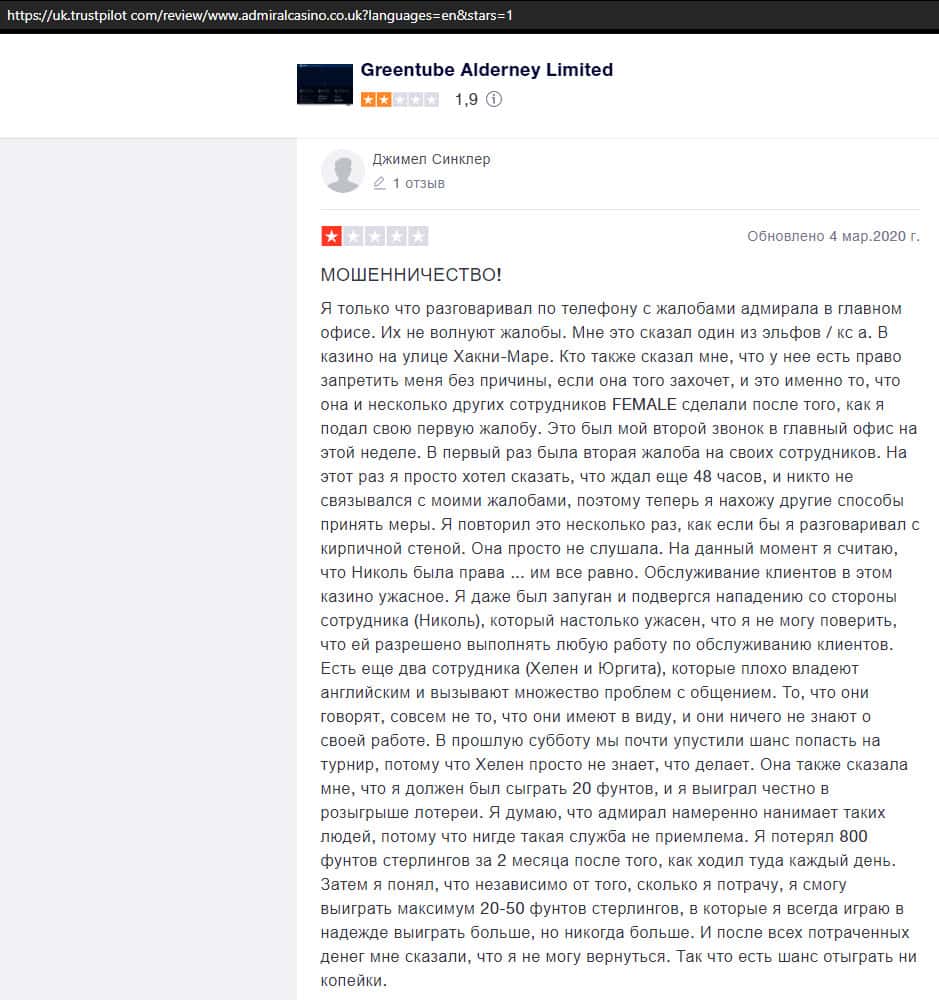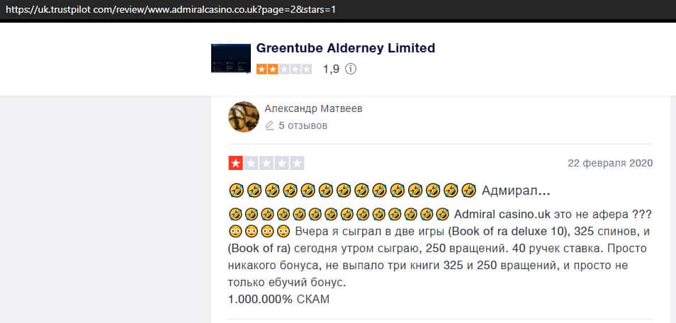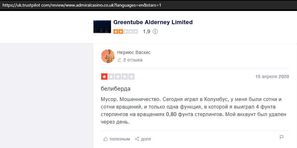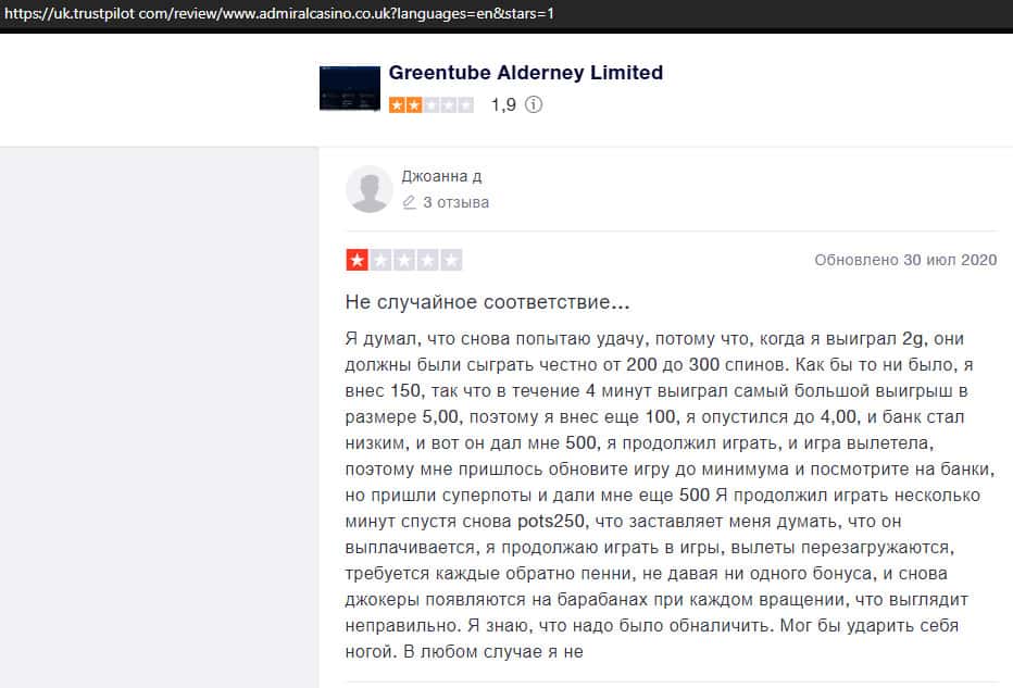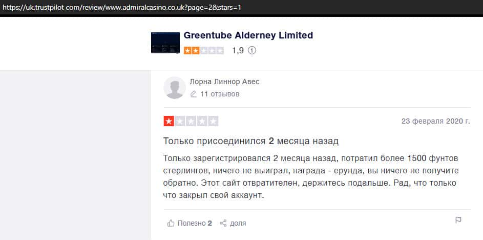 В данном отзыве о конторе Admiral Casino рассказывается, что человек потратил 1500 фунтов стерлингов, при чем не получилось выиграть ни копейки.