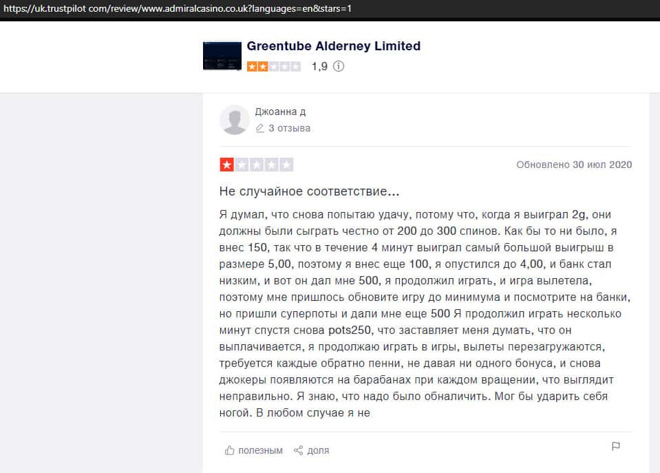 Человек в своем отзыве вылил очень много негатива по существу на контору Адмирал Казино, и в тоже время подчеркнул, что выиграть в этой шараги у вас не получится.