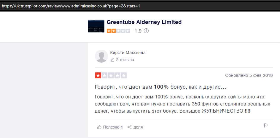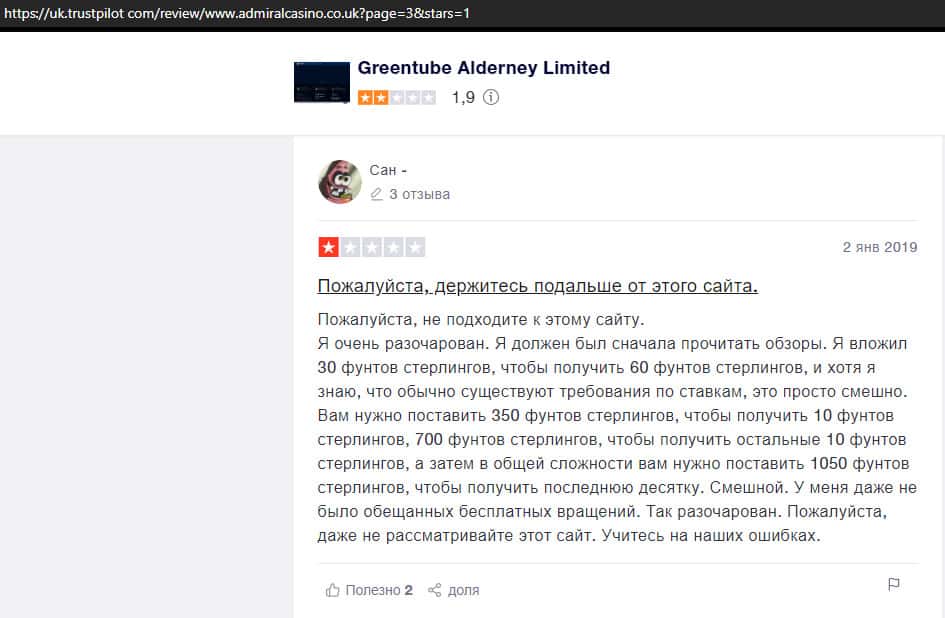 Лохотрон Адмирал Казино якобы раздает бонусы своим клиентам, но в тоже время нужно потратить тысячи фунтов стерлингов, чтобы получить небольшую сумму в 50 фунтов.