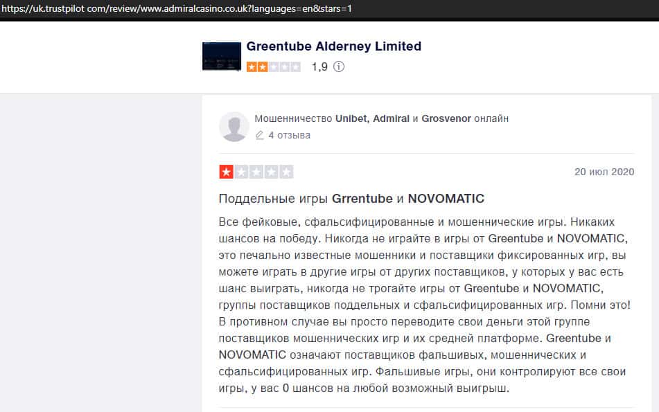 Люди не советуют связываться с псевдоказино Admiral Casino