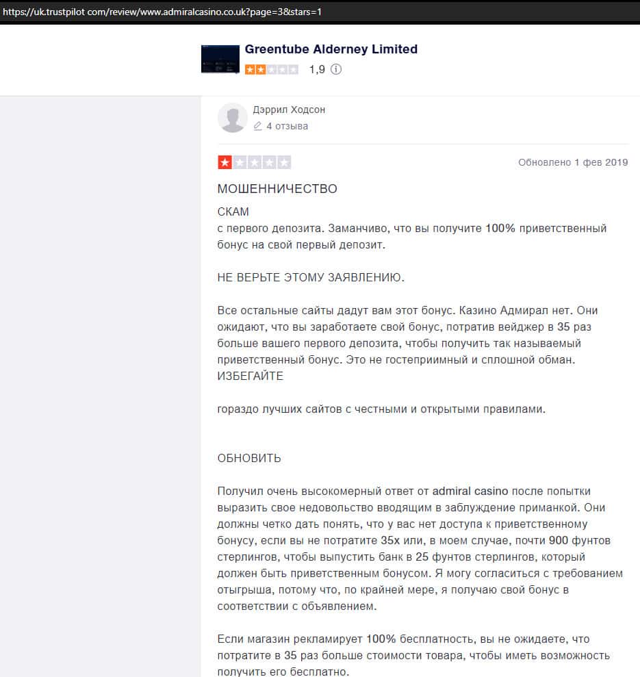 В следующей публикации указывается, что лохотрон Admiral Casino просит клиентов участвовать в их невыгодной бонусной программе, при которой нужно вложить много денег.