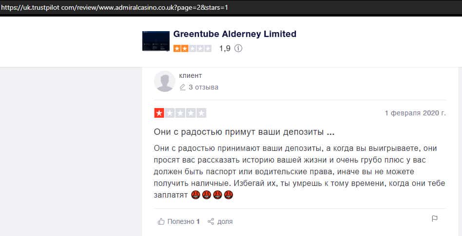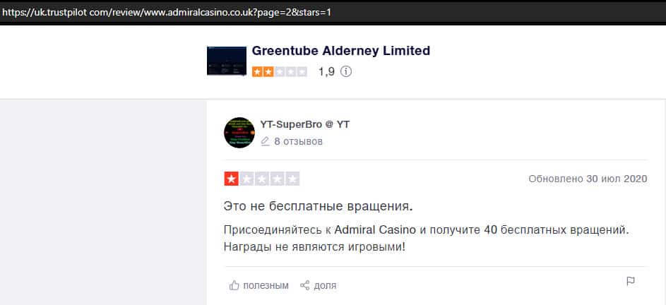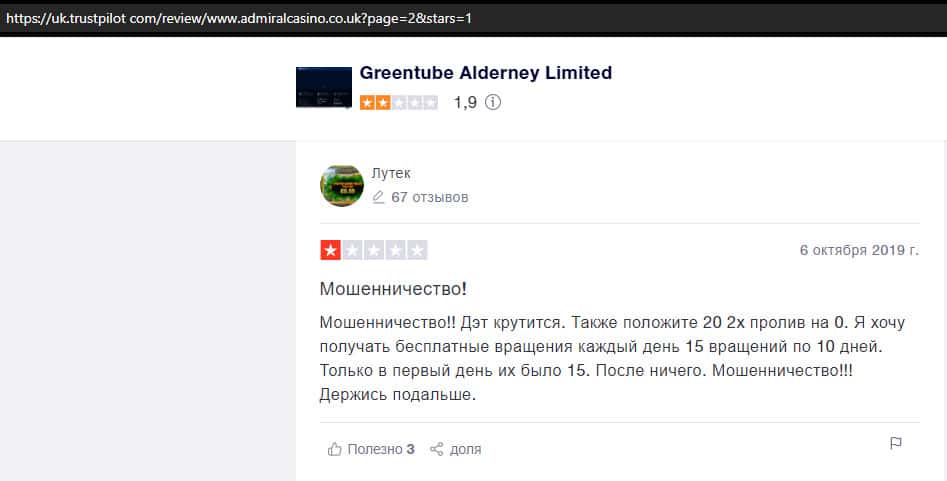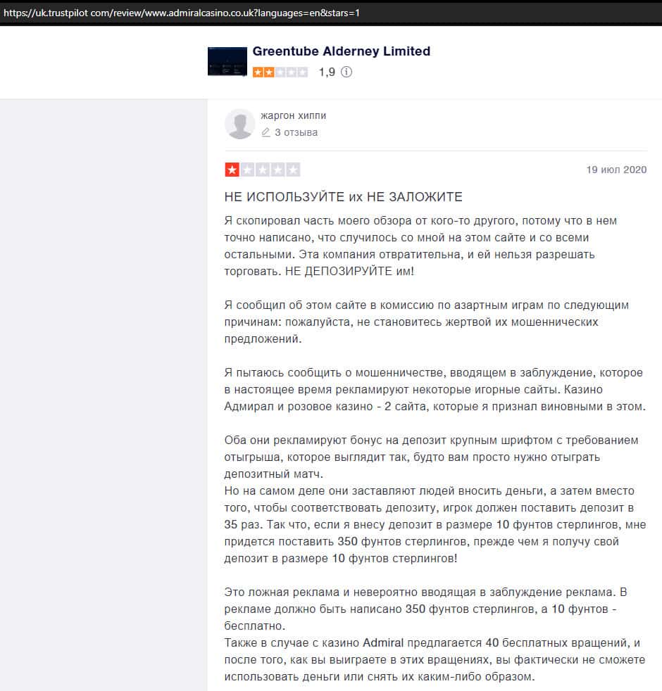 Автор следующей публикации указывает, что хотел бы поставить нулевую оценку мошенникам Admiral Casino, так как они не могут настроить платежную систему.