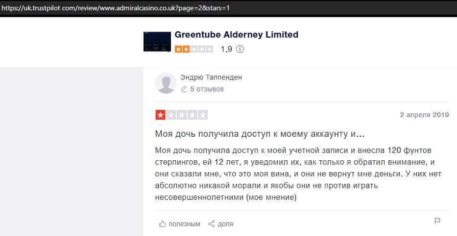 Человек в своем отзыве рассказал, как контора Admiral Casino не вошла в его положение из-за того, что его несовершеннолетняя дочь проиграла все его деньги и они не отменяют слив.
