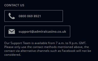 Мошенническое казино Admiral Casino опубликовало на своем сайте некоторые контактные данные, но не факт, что они вам ответят на вопросы по выводу средств: