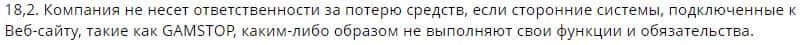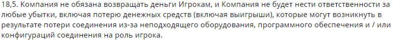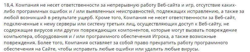 В соглашении сразу сказано, что контора Admiral Casino не несет ответственности за потерю средств клиентов в случае, если их системы дадут банальный сбой.