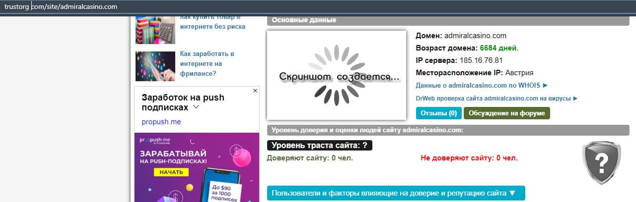 Контора Admiral Casino не предоставила информации о владельце сайта, так как они боятся публичности и не хотят отвечать за совершенные преступления.