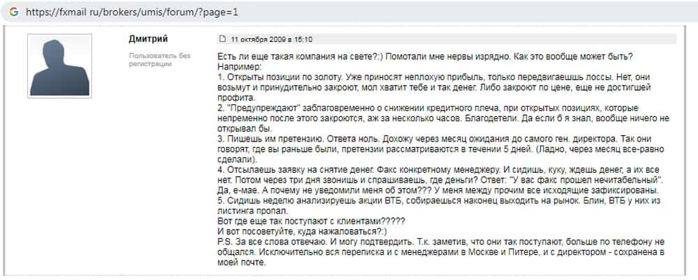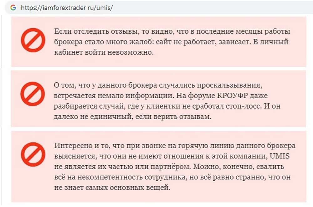 Недостатки фальшивого брокера UMIS, выявленные экспертами