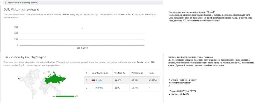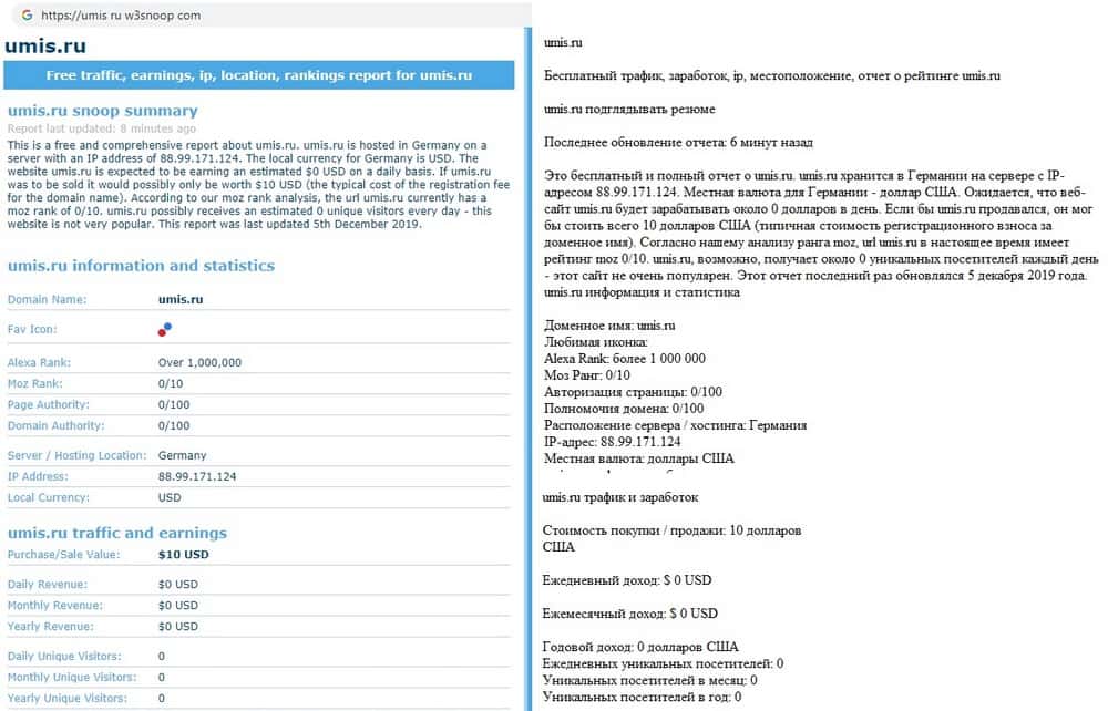 Проверка по домену ЮМИС на другом сайте показывает, что число ежедневных посетителей на сайте зашкаливает за 600, большинство из них - россияне. Остается только гадать, какими суммами ворочает эта шарашкина контора, продолжая уже почти 20 лет облапошивать невинных граждан РФ.