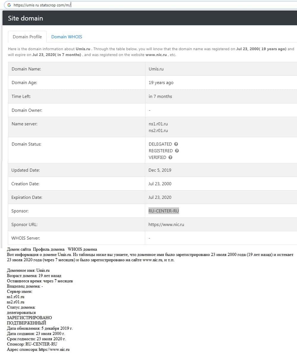 Из данных о домене ЮМИС можно увидеть дату их создания - 2000 год. Продлен адрес до июля 2020 года, кто знает, возможно после этого скаммеры просто напросто сольют всю базу данных подчистую и свалят отдыхать на острова с награбленными денежками своих клиентов. Владелец сайта - не показан.