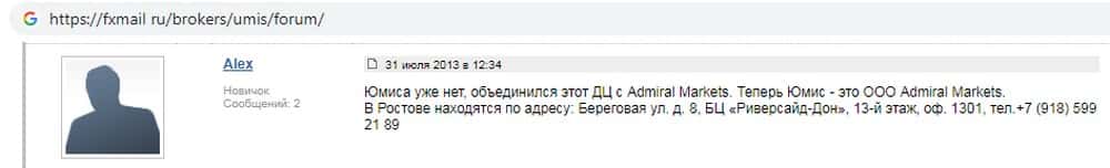 Дальше - больше, по отзывам бывших вкладчиков, облапошенных бесстыжими лохотронщиками из UMIS, узнаем адрес шарашки в России. Находится офис дилингового центра, слившегося с компаний Адмирал Маркетс, в Ростове. Отсюда кидалы спокойно занимаются своими грязными делами: