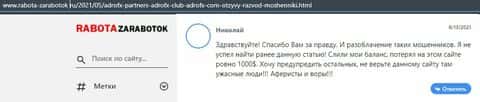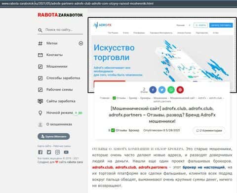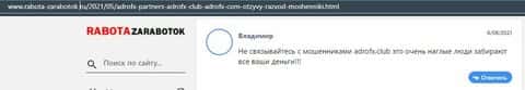 Далее представлена информация о мошеннической форекс-конторе Адро ФХ, где описывают, что это аферисты, которые выманивают у наивных клиентов крупные суммы денег.