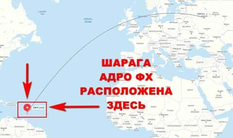 Контора Адро ФХ указала на своем сайте, что она зарегистрирована и расположена на территории Сент-Люсии, что является оффшорной зоной и довольно далеко от Москвы.