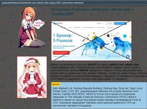 Адро ФХ - очередной мошеннический брокер, который придумал легенду о предоставлении доступа к торговли на финансовых рынках в том числе и Форекс. На первый взгляд выглядит именно так, но попробовав, люди бегут оттуда из-за его мошеннических действий. Шулера предлагают торговать через известный кухонный терминал MetaTrader4, а это мошенническая платформа, которая является частью MetaQuotes. Оффшорная прописка, отсутствие лицензии и отказ от ответственности указывают лишь на одно: связываться с AdroFX Com (он же AdroFX Club) конечно же нельзя.
