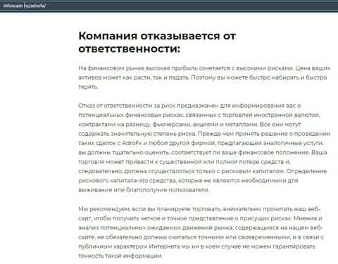 Контора Адро ФХ указывает в своем соглашении, что могут возникнуть ситуации, когда она не сможет ничего сделать с пропажей денег клиентов. При чем ответственности за это не несет.