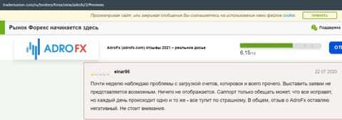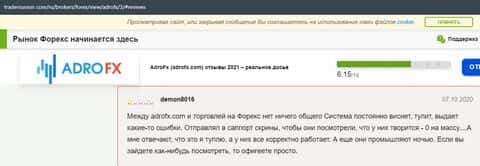 Пользователь сети также отметил, что торговая система конторы Адро ФХ тупит очень страшно, так как заявки не пропускает и из-за этого счет быстро уходит в большой убыток.