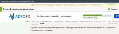 Еще один клиент конторы Адро ФХ поведал об общем впечатлении касательно торговли через их платформу. Он не доволен тем, что она часто не работает, да и служба поддержки молчит.