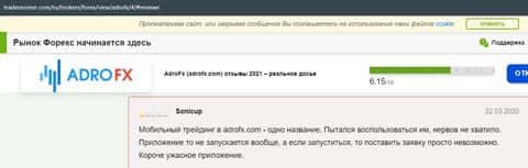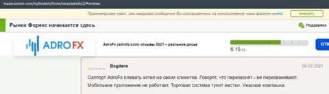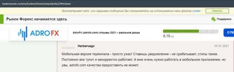 Еще один человек подметил, что мобильная версия торгового терминала форекс-конторы AdroFX Club просто ужас, так как она постоянно тормозит и некорректно работает.
