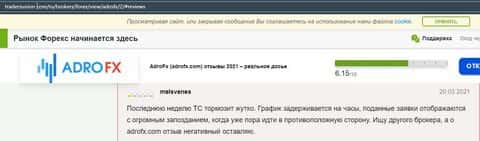 Трейдер указывает на проблему в работе конторы Адро ФХ, так как торговая платформа работает очень медленно, а местами и вовсе зависает на несколько часов и позиции уходят в минус.