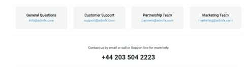 Далее представлена контактная информация мошеннической конторы AdroFX Club, где определенно указано множество электронных почт, номер телефона и адрес регистрации: