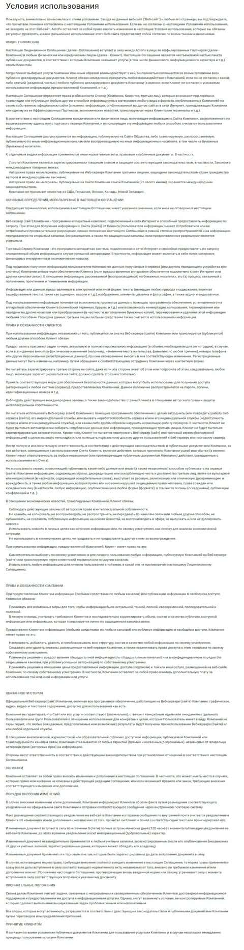 Ниже вы можете ознакомиться со всей версией договора форекс-мошенников Адро ФХ, где указаны все подводные камни, которые ждут клиентов в процессе использования их услугами.