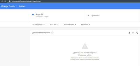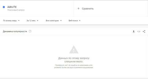 По статистике запросов, контора "Adro FX" набрала очень мало запросов и сервис Гугл Трендс не смог предоставить статистические данные.