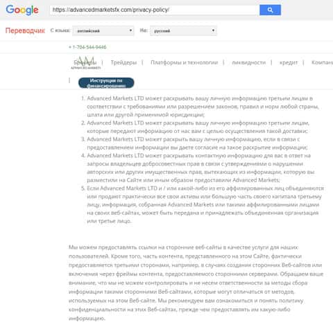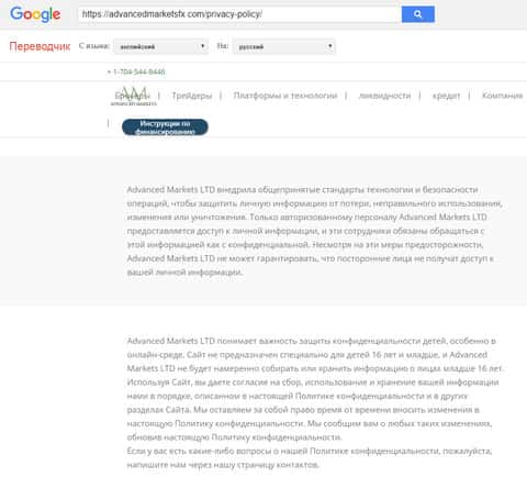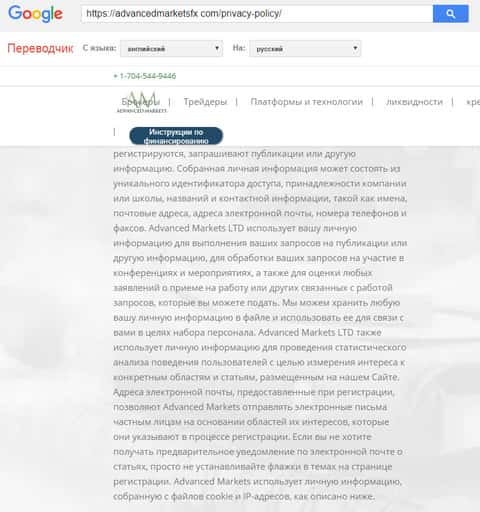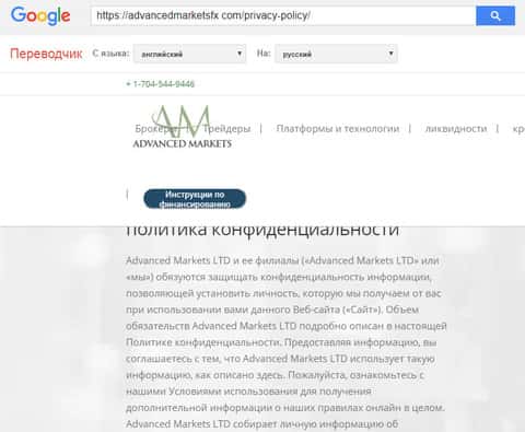 Политика конфиденциальности у мошенников Адвенцед Маркетс начинается довольно стандартно, а именно с информации о том что жулики Advanced Markets собирают личную и персональную информацию своих клиентов. На изображении ниже вы можете увидеть начало политики конфиденциальности шулеров Адвенцед Маркетс.