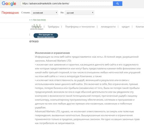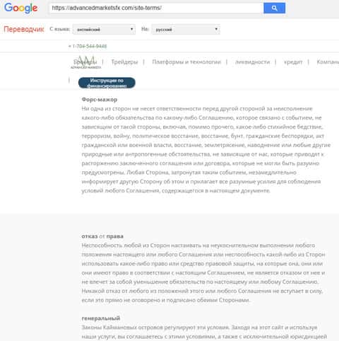 Ну и завершаются условия сотрудничества у лохотрона Advanced Markets информацией о том, что шулера Адвенцед Маркетс не несут ответственности в случае форс мажорных обстоятельств. К тому же мошенники Advanced Markets предупреждают о том, что все споры будут регулироваться по законам оффшора и на его территории.